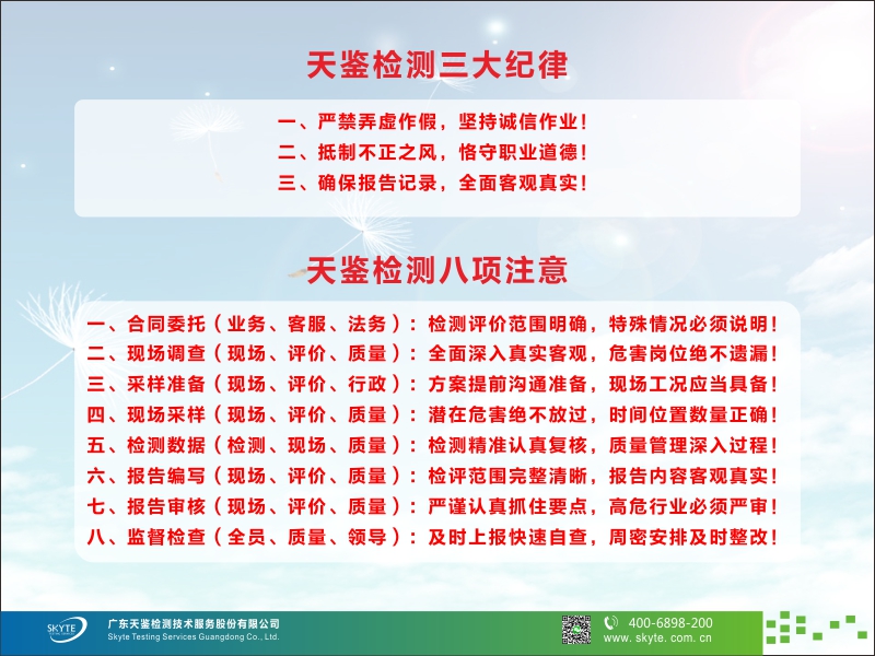 天鑒檢測自成立以來,即以“天鑒檢測 公正品質”作為公司口號,天鑒檢測認為,保持公正性是第三方檢測機構的必備條件,也是對社會的首要責任。