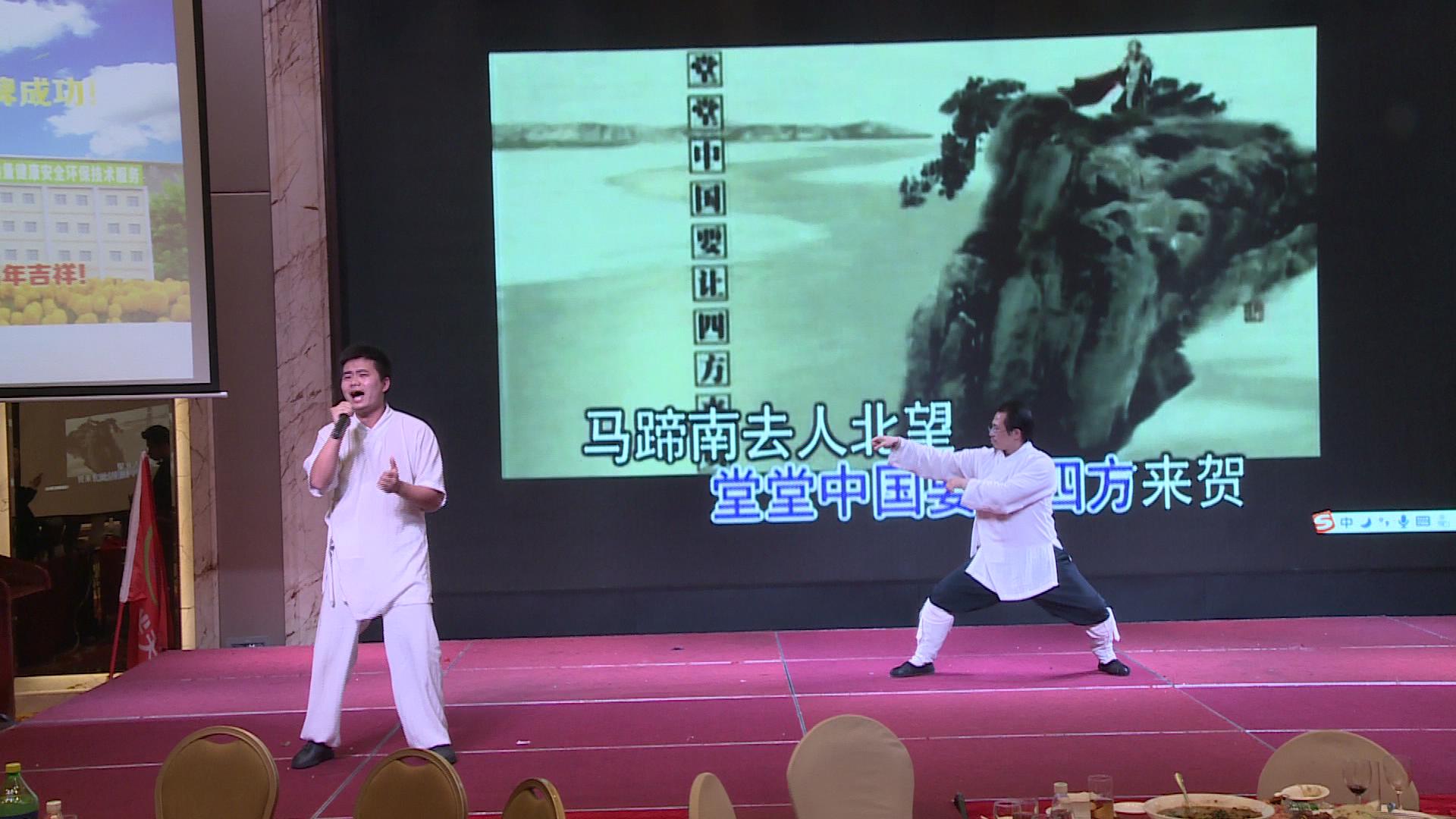 意喻2017公司三板成功掛牌“旗開得勝”的精彩武術表演拉開了慶典的序幕!由青城道源(道家養身會所)奉獻的這一開場節目,展現了中國國粹“書法”和“武術”的光彩,以及對道家文化的弘揚,使得在這臺晚會從一開始場就具有一種“精氣神”的氣場。