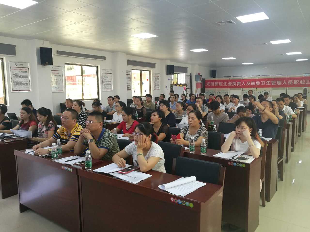 2017年9月14日-9月15日,光明新區舉辦了兩天6期職業衛生管理人員培訓,對來自轄區內存在職業病危害企業負責人和安全管理人員共1332人參加了此次培訓。