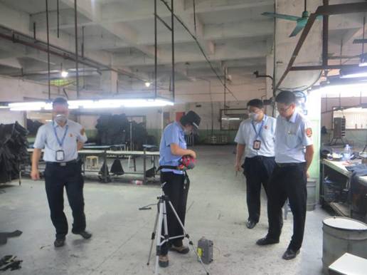 執法人員會同廣州職防院技術人員開展職業危害因素檢測