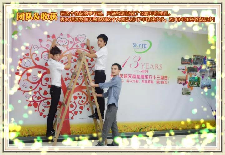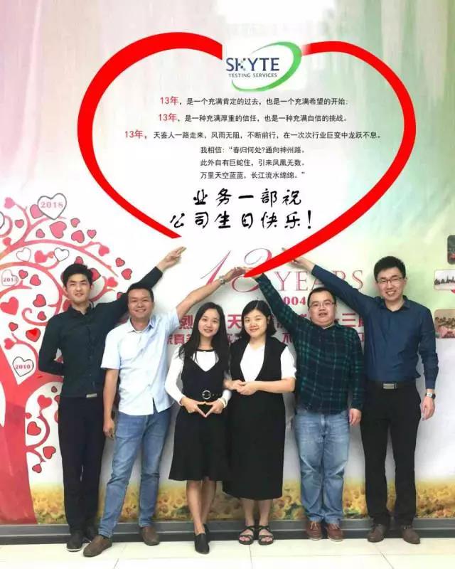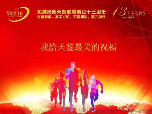 SKYTE 十三易春秋,風華正茂! 十三載耕耘,碩果累累! 十三看明朝,勵精圖治! 十三祝天鑒,鵬程萬里! ——來自業務三部的祝福 ——來自財務部的祝福 SKYTE 輝映日月十三年,煌煌偉業動云天; 明日榮光相與共,天高云淡盡歡顏。 ——來自檢測部的祝福 憶往昔,風雨兼程十三載,看今朝,厚德載物美名揚。在這秋風送爽,丹桂飄香的時節,天鑒檢測迎來了十三華誕。在此向天鑒檢測致以最誠摯的祝福,愿天鑒永遠年輕,永遠充滿生機!希望天鑒檢測繼續秉承“誠信、嚴謹、公正、專業”的理念,在實現“天鑒夢”的征途中再譜新篇。 ——來自現場部環境組的祝福 SKYTE 兢兢業業十三年,公正品質造天鑒。明日榮光相與共,天高云淡盡歡顏。熱烈祝賀天鑒十三周年生日快樂! ——來自客服部的祝福 地之坤,天之鑒;路漫漫,十三載;聚四海之英才,拓職衛之鴻途,專健康之至理,立安全之高德,揚環保之風尚。 十三載,歲悠悠,你來我往,結不解之佳程。采樣兮,披星而戴月;檢測兮,格物之精準;評價兮,歷歷而在目。古有見一葉落而知秋,今朝聞一聲而知其噪,嗅一味而辯其毒,測一劑而獲其量,何也?天鑒之精也! 何以謂之?蓋此處可造棟梁之材,結良緣之喜,得心歸之安。 是故,天之鑒,必明德于五洲,創此類之先河,立百年之基業。嗟乎,與爾共睹之,大幸也! ——來自評價部的祝福 SKYTE 這是同舟共濟風雨兼程的十三年;這是勇攀高峰不言放棄的十三年;這是從蹣跚學步到共創輝煌的十三年。天鑒公司始終圍繞著“嚴謹、高效、專業、誠信”八字方針不斷前行,值此十三周年之慶,祝愿公司在中國檢測行業迅速發展,競爭愈裂的形勢下, 再創新高,下一個十三年會更好! ——來自環境監測產品檢測部的祝福 欣喜初入天鑒的新人,激動著你蓬勃發展的今天; 同行三載天鑒的伙伴,分享著你快速蛻變的昨天; 相伴五年天鑒的精英,期待著你聚力奮進的明天; 打拼七年天鑒的戰友,感動著你堅定信念的現在; 堅守九年天鑒的老鐵,懷想著你不懈努力的過去; 相親相愛的天鑒家人,夢想著你創造輝煌的將來! 讓我們共同慶祝天鑒檢測:十三歲生日快樂! 祝福你從今之后的每一步都熠熠生輝! ——來自現場部的祝福 SKYTE 開拓事業的犁鏵,盡管如此沉重;但您以非凡的毅力,一步一步地走過來了!愿典禮的掌聲,化作瀟瀟春雨,助你播下美好未來的良種! ——來自檢測部報告室的祝福 夢想與遠方,攜手與天鑒同行,汗水與喜悅,用心與天鑒分享,十三年的成長,愿天鑒越來越好,越走越遠。 ——來自業務五部的祝福 SKYTE 你是十三載沙礫鋪筑的大路,通向無邊的未來錦城,你是很多人用青春譜寫的華章,奏響我們心底的躍動,我愿陪你繁花緊簇,我愿等你榮耀無數,我愿此時,我愿此刻,祝你生日快樂! ——來自業務六部的祝福 天行健君子以自強不息, 鑒萬物公司以公正永續! 你我他同祝之發展壯大, 好事業共為之砥礪前行! 在這個收獲的季節里,天鑒檢測迎來了十三周年的生日。衷心的祝福我們天鑒檢測這個大團體在2017年里收獲多多,2018年將收獲更多。 ——來自市場部的祝福 SKYTE 13年,是一個充滿肯定的過去,也是一個充滿希望的開始;13年,是一種充滿厚重的信任,也是一種充滿自信的挑戰。13年,天鑒人一路走來,風雨無阻,不斷前行,在一次次行業巨變中龍躍不息。在這生機勃勃的日子里,天鑒大家庭繼續譜寫接下來的春秋和故事,祝公司新的征程再普新篇。 ——來自業務一部的祝福 天增歲月鑒十三載榮光無數,唯愿風雨同路相守相攜再戰日后征途,祝天鑒生日快樂! ——來自業務二部的祝福 SKYTE 從2004年11月5日的應時初生,到如今的行業佼佼者!一份耕耘,一份收獲!天鑒人以矯健的步伐走過了風雨兼程的13年,走過了同心同德的13年,走過了跨越發展的13年。今日有幸迎來公司第13個生日,值此歡慶之際,恭祝公司發展越來越好,事業蒸蒸日上,在未來的征程中更創偉業!! ——來自總經辦的祝福 從應運而生到歷盡滄桑,從開拓創新到殊榮加身,從勇攀高峰到鑄造精品。十三載,不忘初心,繼續前行!祝天鑒生日快樂! ——來自行政人事部的祝福 SKYTE 豆蔻年華的悸動,散發著春的意韻;朝氣蓬勃的生命,綻放出清純而絢爛的鮮花;風風雨雨,我們一起走過了春意盎然的年華。天鑒,祝你生日快樂! ——來自質量部的祝福 物換星移,歲月匆匆,天鑒一十三年華誕;繼往開來、勇攀高峰、共創企業美好明天。 ——來自開發部的祝福