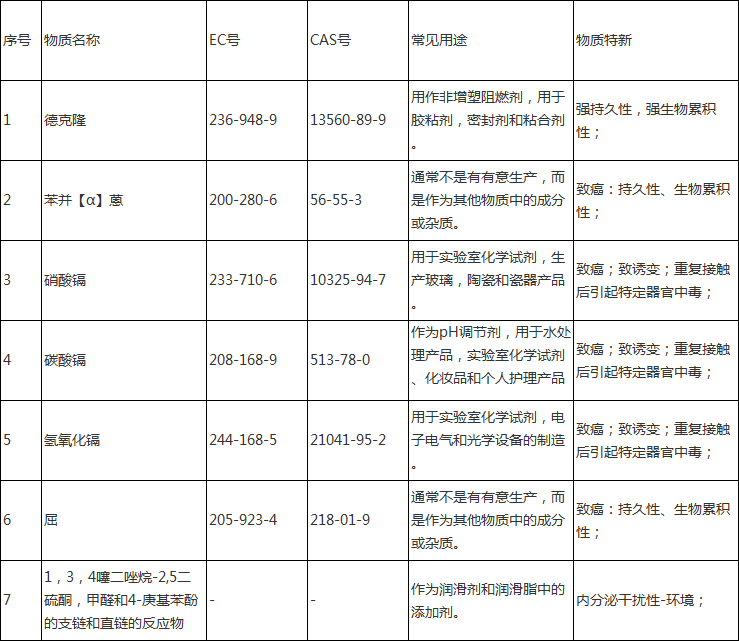 快訊:歐盟REACH法規正式更新了第十八批SVHC候選物質清單
