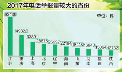 快訊: 2017年環保舉報辦接到環保舉報61.89萬件