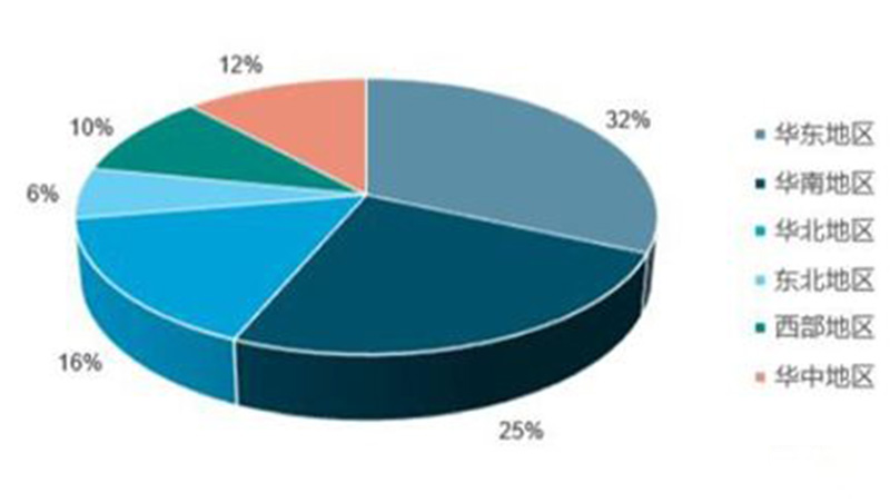 據不完全統計,監測行業銷售額組成最大的來源是華東地區和華南地區,分別占32.4%和24.8%。這主要是由于首先華東、華南是重要的工業區,本身對于監控設備的需求就比較多。其次,華東華南是經濟比較發達的地區,政府財政對于監控的投入也更大。