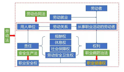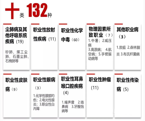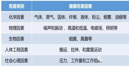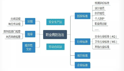 一、企業為什么要做職業健康? 二、什么是職業健康? -圖解- 01、預測和識別 預測—潛在危險進入工作場所之前,對其進行預測識別識別—確認化學、物理或生物類或不符合人體工程學,且對健康有損的潛在危害。 02、評估 評估—對工作場所內的化學危害、物理或生物因素(或不符合人體工程學的情況)程度進行評估。通常需要對工作場所的危害/因素對員工構成的風險程度進行測量,特別是對環境與身體接觸的相關部位,如呼吸和聽覺等,還需將結果與推薦的職業接觸限值(OEL)(如有)進行比對。 03、控制(controlling) 控制—通過采用工藝改善、工程防護或其他評估認為必要的方式來對化學、物理、或生物因素,或不符合人體工程學的情況進行控制。 三、什么是職業病? 注意點:醫學上所稱的職業病泛指職業病危害因素所引起的疾病,而在立法意義上,職業病卻有其特定的范圍,即指政府所規定的法定職業病。 法定職業病:根據2013年12月23日,國家衛生計生委、人力資源社會保障部、安全監管總局、全國總工會4部門聯合印發的《職業病分類和目錄》:法定職業病共分為10大類132種。 職業危害:是指在生產勞動過程及其環境中產生或存在的,對職業人群的健康、安全和作業能力可能造成不良影響的一切要素或條件的總稱。 職業病危害因素:又稱職業病有害因素,在職業活動中產生和(或)存在的、可能對職業人群健康、安全和作業能力造成不良影響的因素或條件,包括化學、物理、生物等因素。 四、職業健康法律法規體系 ①職業病防治法 2001年10月27日第九屆全國人民代表大會常務委員會第二十四次會議通過,歷經4次修正 ②相關法律 中華人民共和國安全生產法 中華人民共和國勞動法 中華人民共和國勞動合同法 立法宗旨 法律關系 1 法規 包括行政法規和地方性法規 《放射性同位素與射線裝置安全和防護條例》國務院令第449號 《使用有毒物品作業場所勞動保護條例》國務院令第352號 《危險化學品安全管理條例》國務院令第591號 《工傷保險條例》國務院令第586號 《女職工勞動保護特別規定》國務院令第619號 2 規章 包括部門規章和地方性規章 《工作場所職業衛生監督管理規定》安監總局令第47號 《職業病危害項目申報辦法》安監總局令第48號 《用人單位職業健康監護監督管理辦法》安監總局令第49號 《建設項目職業病防護設施“三同時”監督管理辦法》 《職業病診斷與鑒定管理辦法》衛生部令第91號 《廣東省高溫天氣勞動保護辦法》廣東省人民政府令第166號 《放射工作人員職業健康管理辦法》衛生部令第55號 《職業健康檢查管理辦法》國家衛生和計劃生育委員會令第5號 3 規范性文件 《職業病分類和目錄》國衛疾控發〔2013〕48號 《職業病危害因素分類目錄》國衛疾控發[2015] 92號 《危險化學品目錄(2015版)》 《高毒物品目錄》衛法監發[2003]142號 《職業衛生檔案管理規范》安監總廳安健 《用人單位職業病危害告知與警示標識管理規范》 《用人單位職業病危害因素定期檢測管理規范》 《用人單位勞動防護用品管理規范》安監總廳安健 4 職業衛生標準及技術規范 檢測與評價標準 GBZ 1-2010《工業企業設計衛生標準》 GBZ 2.1-2019《工作場所有害因素職業接觸限值》 GBZ 2.2-2007《工作場所有害因素職業接觸限值》 GBZ 159-2004《工作場所空氣中有害物質監測的采樣規范》 GBZ 158-2003《工作場所職業病危害警示標識》 GBZ/T 225-2010《用人單位職業病防治指南》 GBZ/T 160/300《工作場所空氣有毒物質測定》 職業健康監護標準 GBZ 188-2014《職業健康監護技術規范》 GBZ 235-2011《放射工作人員職業健康監護技術規范》 職業病診斷標準 GBZ/T 265-2014 《職業病診斷通則》 GBZ/T 157-2009 《職業病診斷名詞術語》 GBZ 70-2015《職業性塵肺病的診斷》 GBZ 84-2017《職業性慢性正己烷中毒的診斷》 GBZ 49-2014《 職業性噪聲聾的診斷》