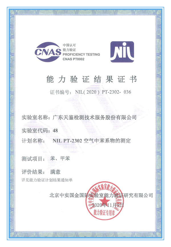 環境及產品五項檢測能力驗證結果均為“滿意”