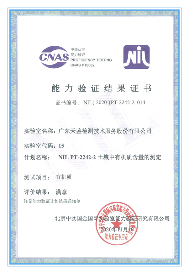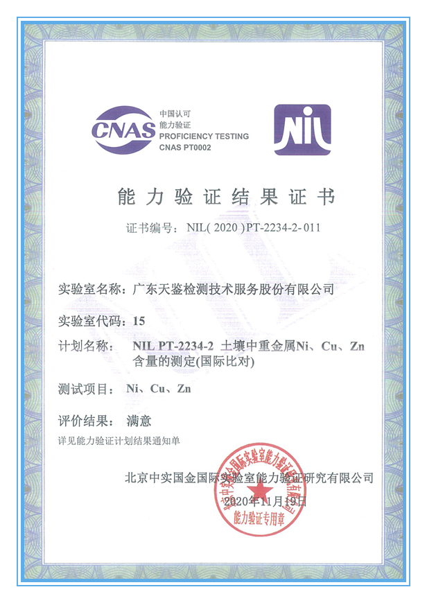 天鑒檢測自2010年即獲得CNAS實驗室認可及CMA資質認可, CMA認證項目現已多達兩千余項,可承接土壤、水、氣、噪聲、輻射、海洋、生態等多個領域的環境檢測業務。曾為亞運會、大運會等相關項目提供過環境檢測服務,2016年,公司入選“廣東省環境保護廳政府購買環境監測服務機構名單(第一批)”和“深圳市政府購買環境監測服務機構名單(第一批)”,2018年獲得“廣東省優秀環境檢測實驗室”稱號,2020年初通過廣東省“重點行業企業用地調查數據庫與管理平臺信息系統”檢測實驗室備案。如您有這方面需求,歡迎聯系咨詢,竭誠為您服務,服務熱線:400-6898-200。
