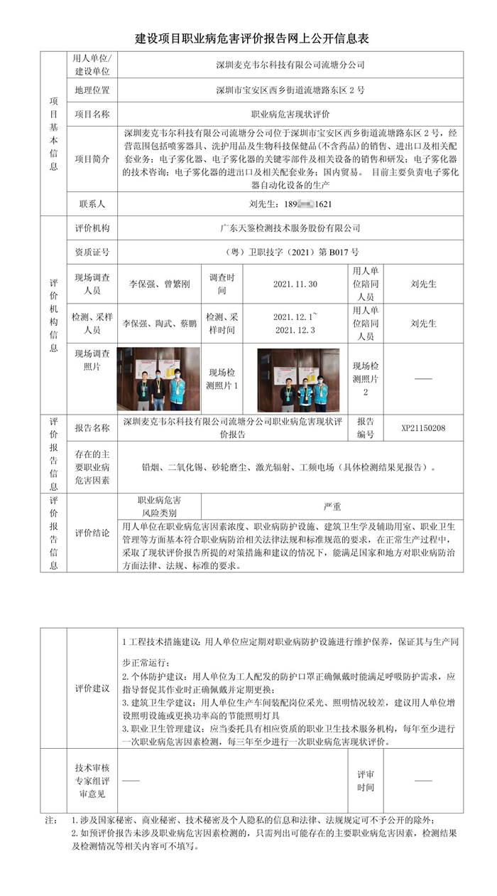 上一篇:XP21150213 深圳市則成電子股份有限公司職業病危害評價報告網上公開信息表