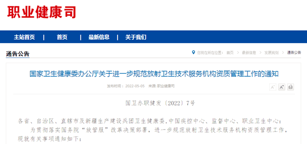 為貫徹落實國務院“放管服”改革決策部署,進一步規范放射衛生技術服務機構資質管理工作,近日國家衛生健康委辦公廳發布關于進一步規范放射衛生技術服務機構資質管理工作的通知,內容關于放射衛生技術服務機構按照資質證書批準的業務范圍開展技術服務,地方各級衛生健康行政部門不得再要求其提供CMA證書。