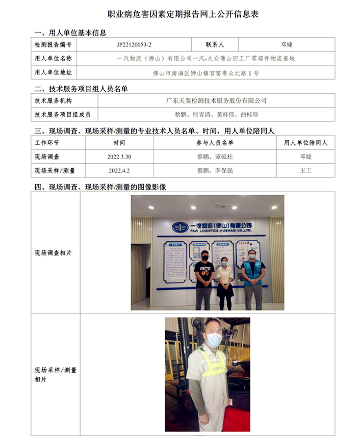 上一篇:JP22120053-1一汽物流山限公司一汽-大眾佛山四工廠整車物流基地職業病危害因素定期