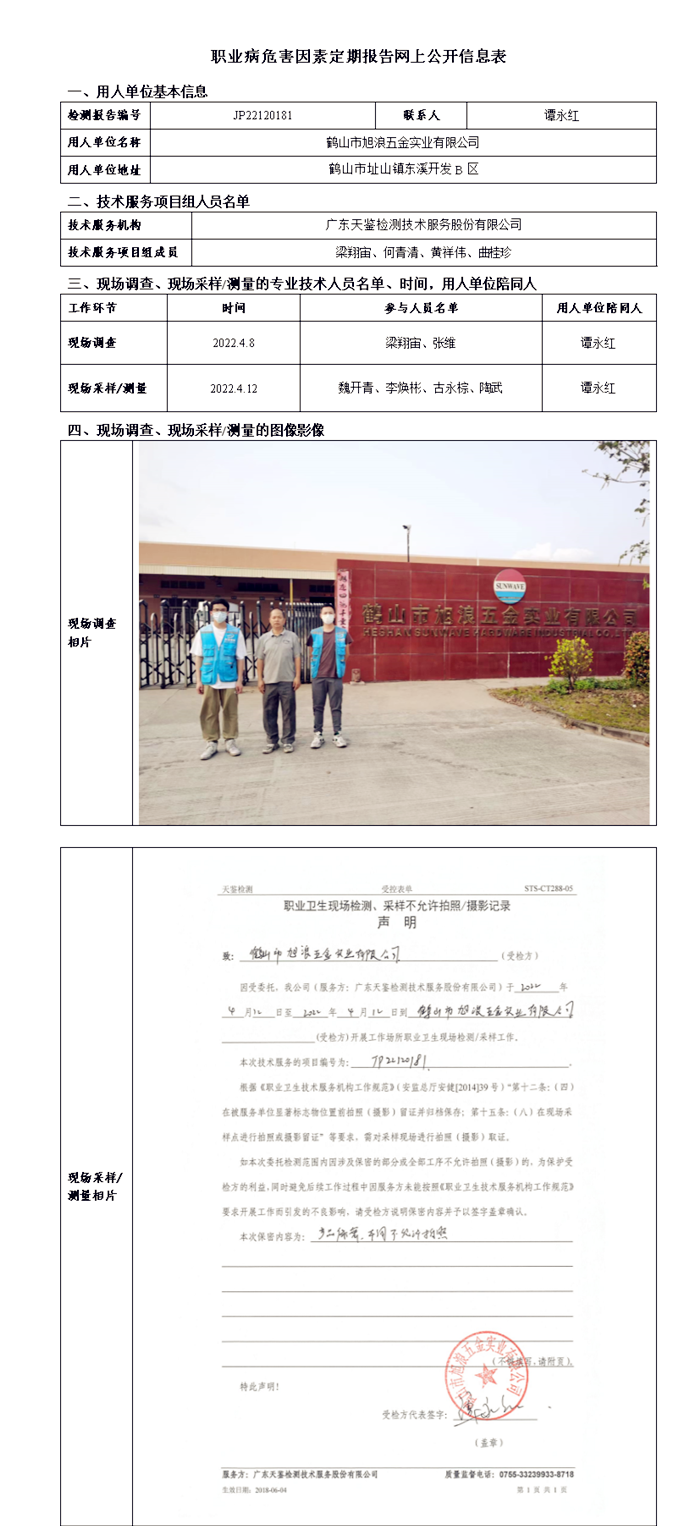上一篇:JP22120170 鶴山金聯五金工藝制品有限公司職業病危害因素定期報告網上公開信息表