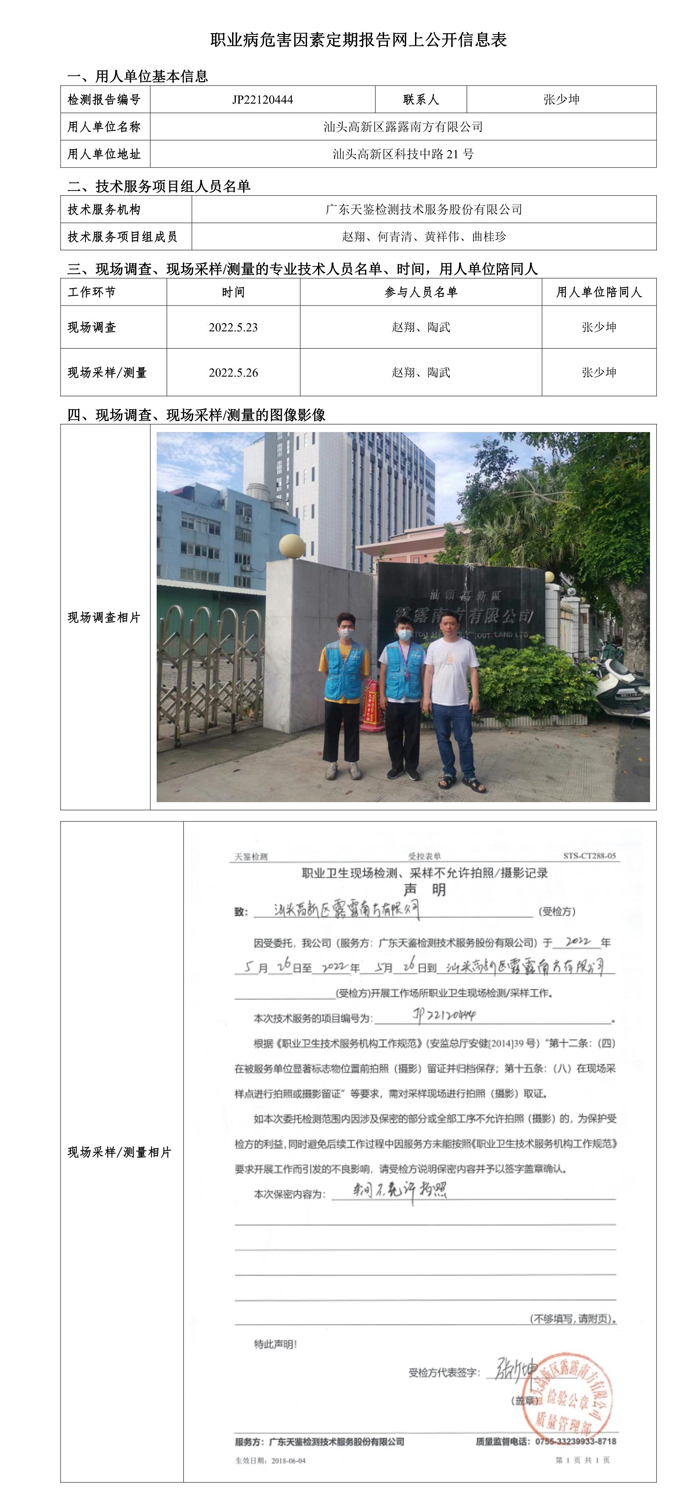上一篇:JP22120440惠州大亞灣富利冷藏有限公司職業病危害因素定期報告網上公開信息表