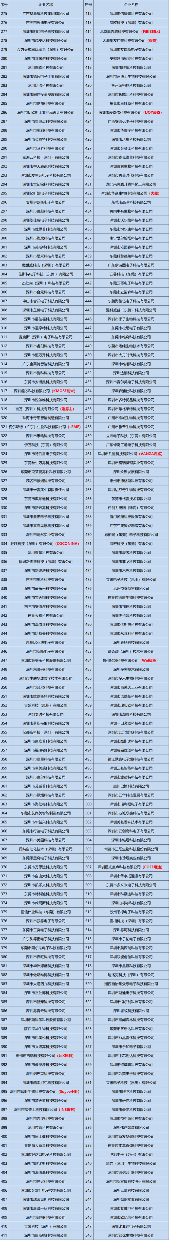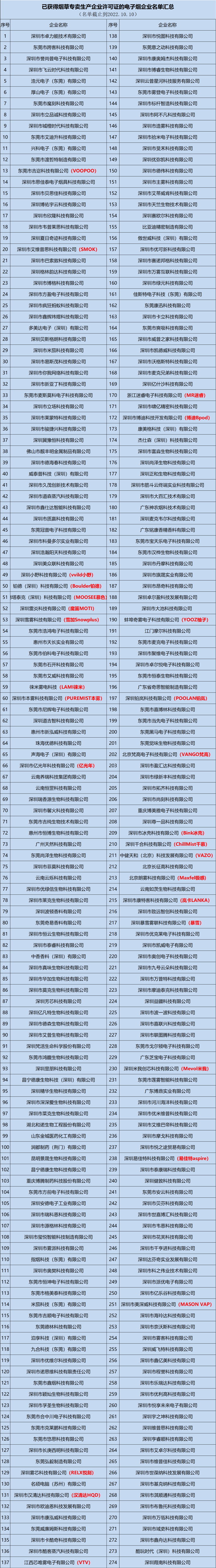 深圳又新增一批獲得電子煙生產許可證企業,至少已累計548家持證