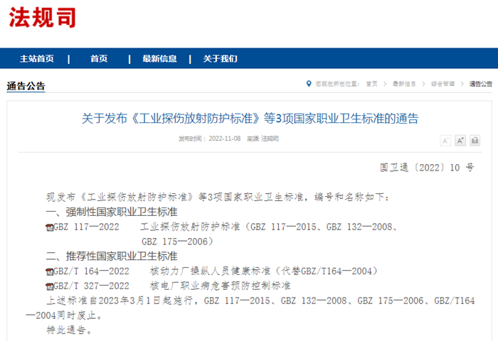 隨著《中華人民共和國職業病防治法》等法律法規、相關放射防護標準的修訂,以及工業射線探傷技術的改進,上述標準已難以滿足對工業射線探傷的放射防護要求,為方便監督管理部門、探傷從業人員以及監測評價等相關人員使用,對上述3項標準進行整合修訂。