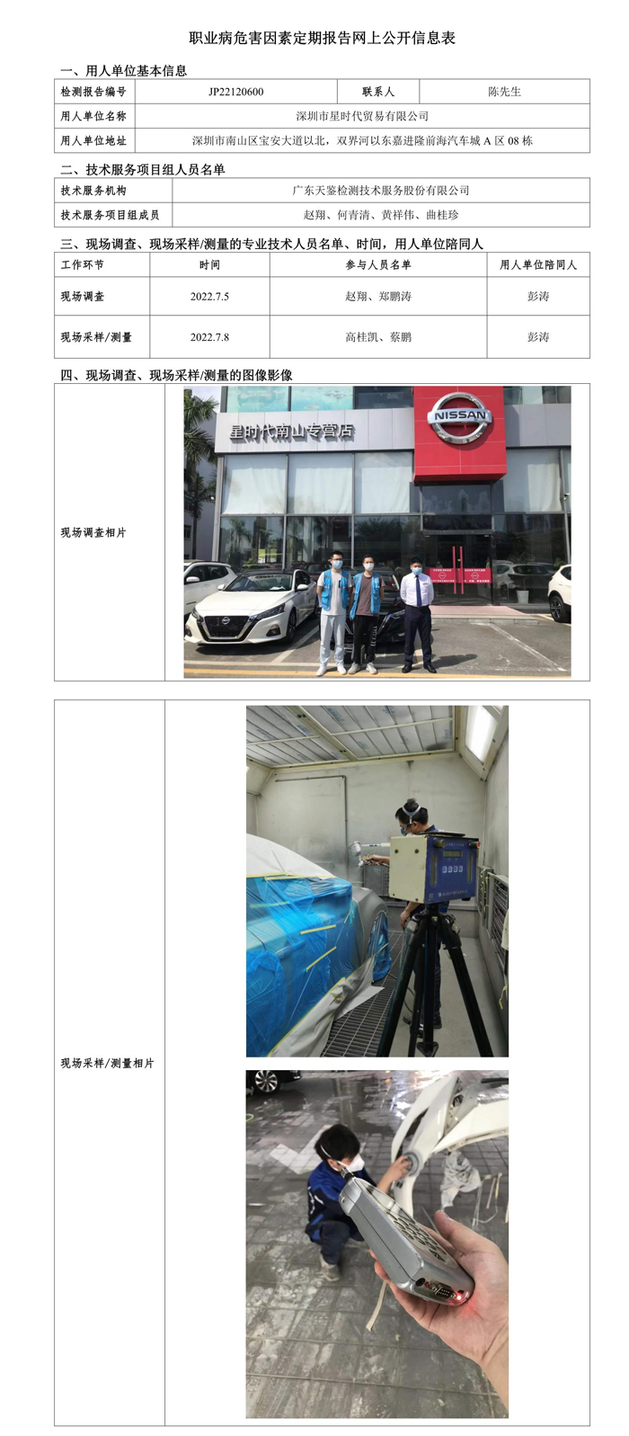 下一篇:JP22120602深圳市星時代汽車有限公司職業病危害因素定期報告網上公開信息表