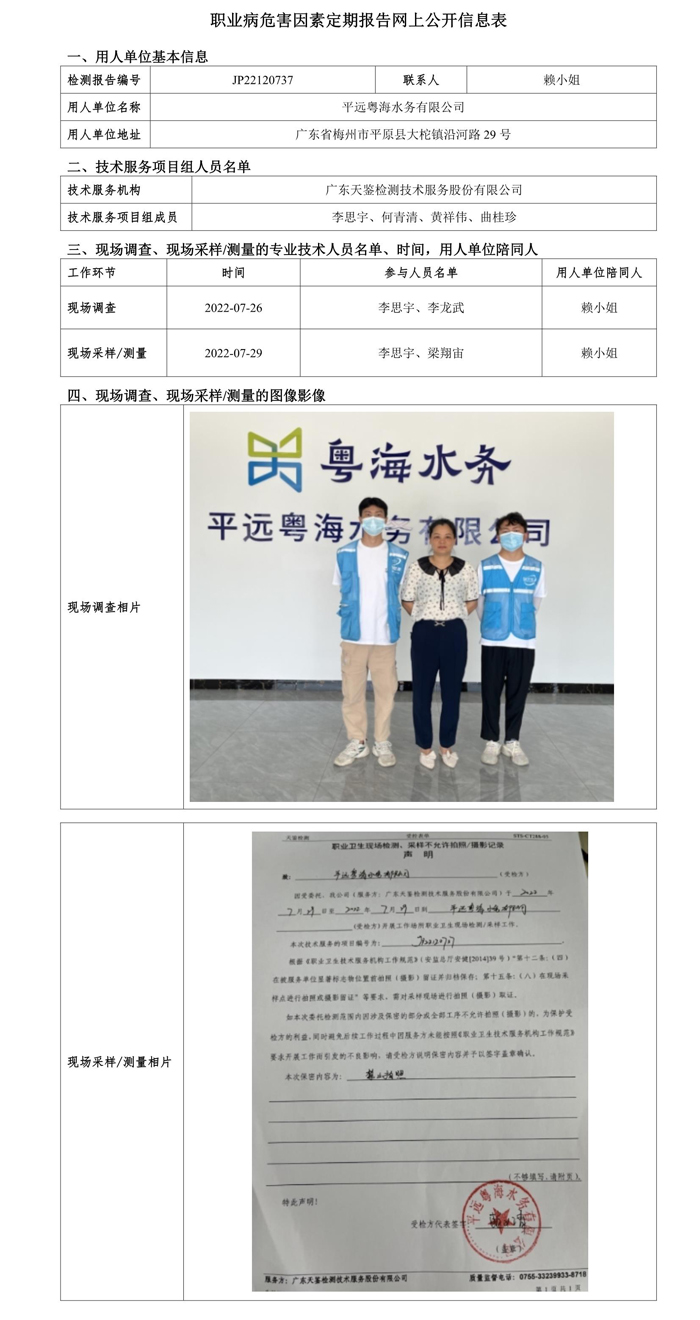 下一篇:JP22120738饒平粵海水務有限公司職業病危害因素定期報告網上公開信息表