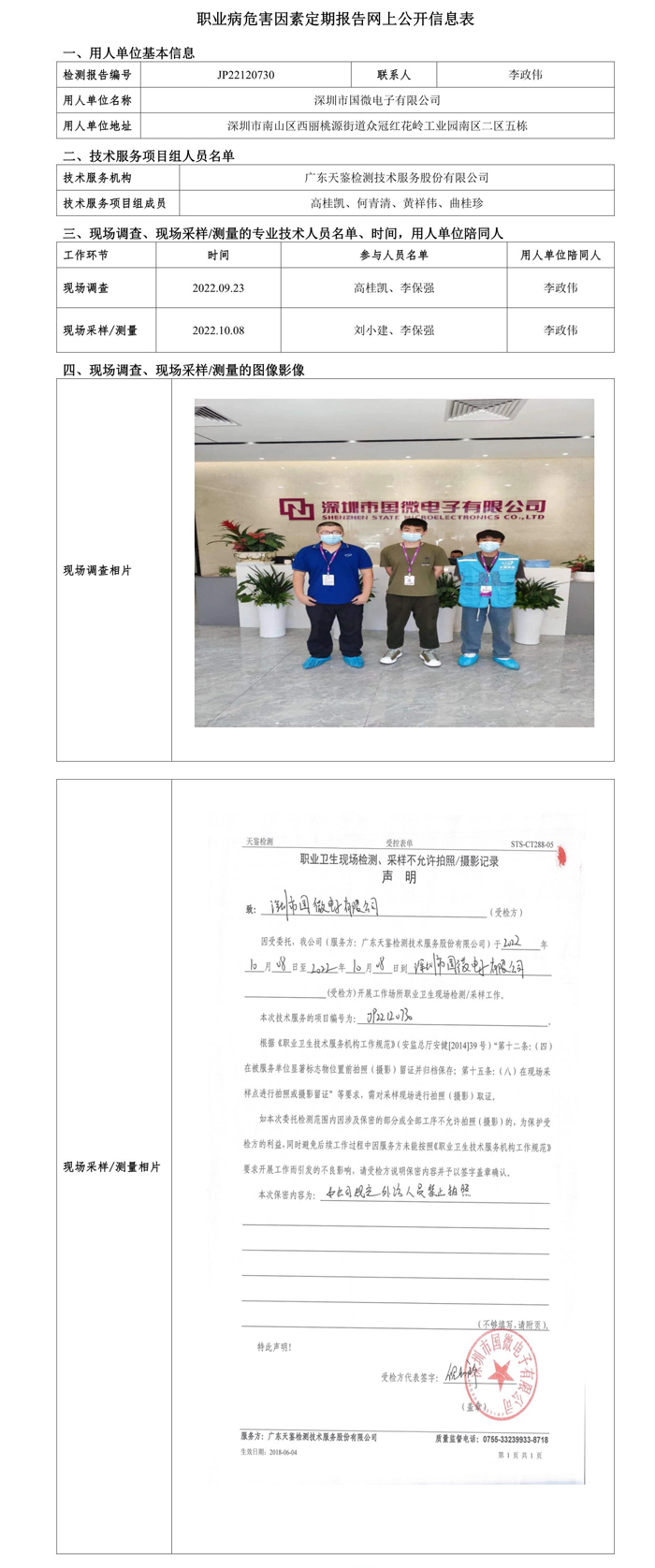 上一篇:JP22120715深圳市邁翔科技有限公司職業病危害因素定期報告網上公開信息表
