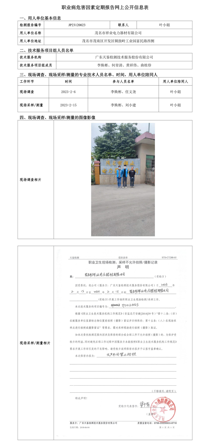 上一篇:JP23120020 捷溫電子(深圳)有限公司職業病危害因素定期報告網上公開信息表