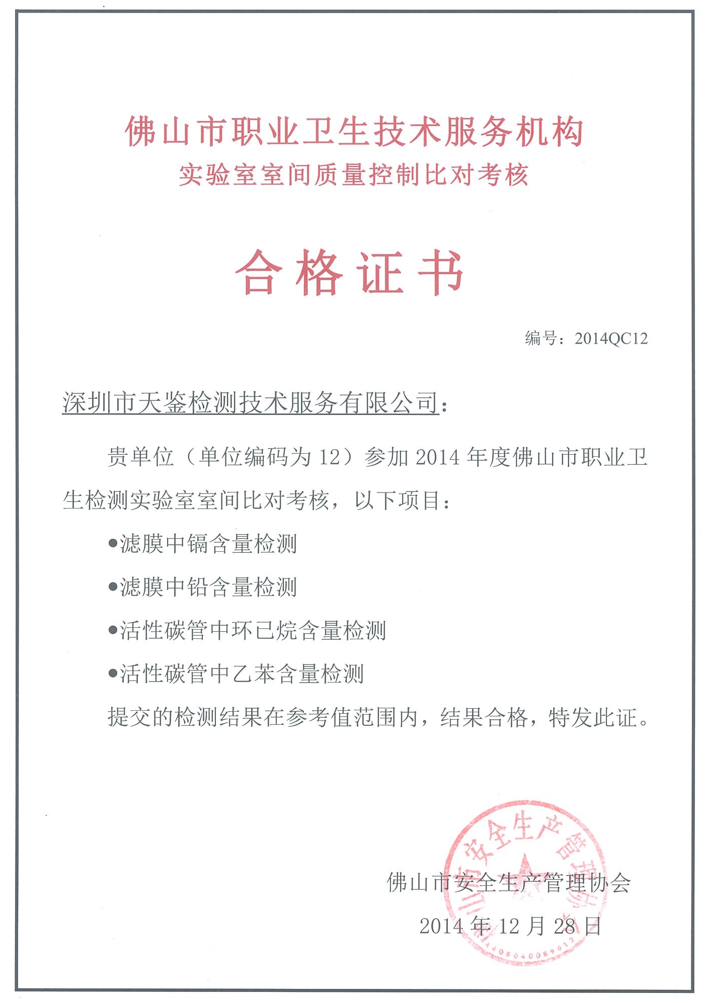 在此次比對結果中,天鑒檢測以優異的成績獲得合格證書。