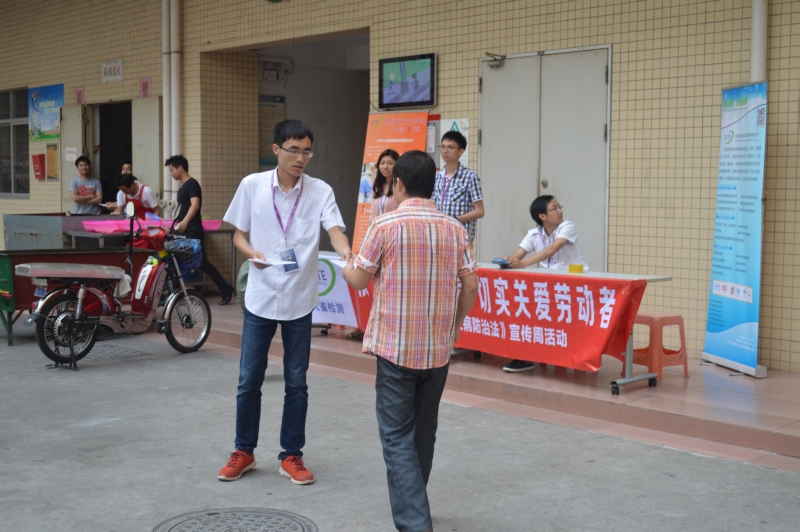 如何做好《職業病防治法》的宣傳?從身邊開始,從一點一滴做起!公司考慮到公司總部所在工業園區用工單位及工人較多,決定就從所在的工業園區開始,連續兩天針對工業園的用人單位及工人開展職業病防治宣傳活動。在4月27日、4月28日兩日,公司每天抽調5位技術人員于工業區人流量較為集中的球場區設立了咨詢點,利用中午、傍晚工人下班時間,為園區員工提供《職業病防治法》相關咨詢服務,派發宣傳資料,讓員工們更多地了解職業病防治信息。