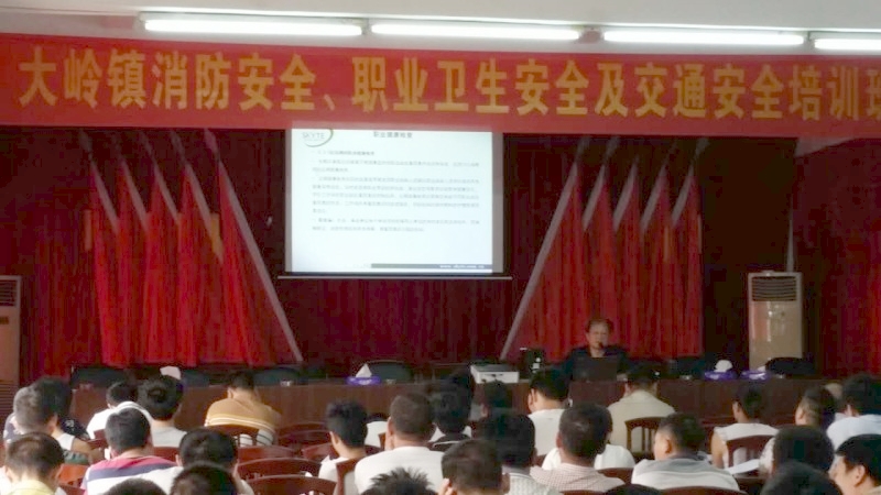7月7日-10日,惠州市惠東縣安監將在多個鎮同時舉辦消防安全、職業衛生安全及交通安全培訓班,為期4天。共召集了近千家企業管理人員及員工來參加培訓,天鑒檢測應邀派出4名職業衛生專家協助當地安監為企業提供職業衛生知識安全講座。