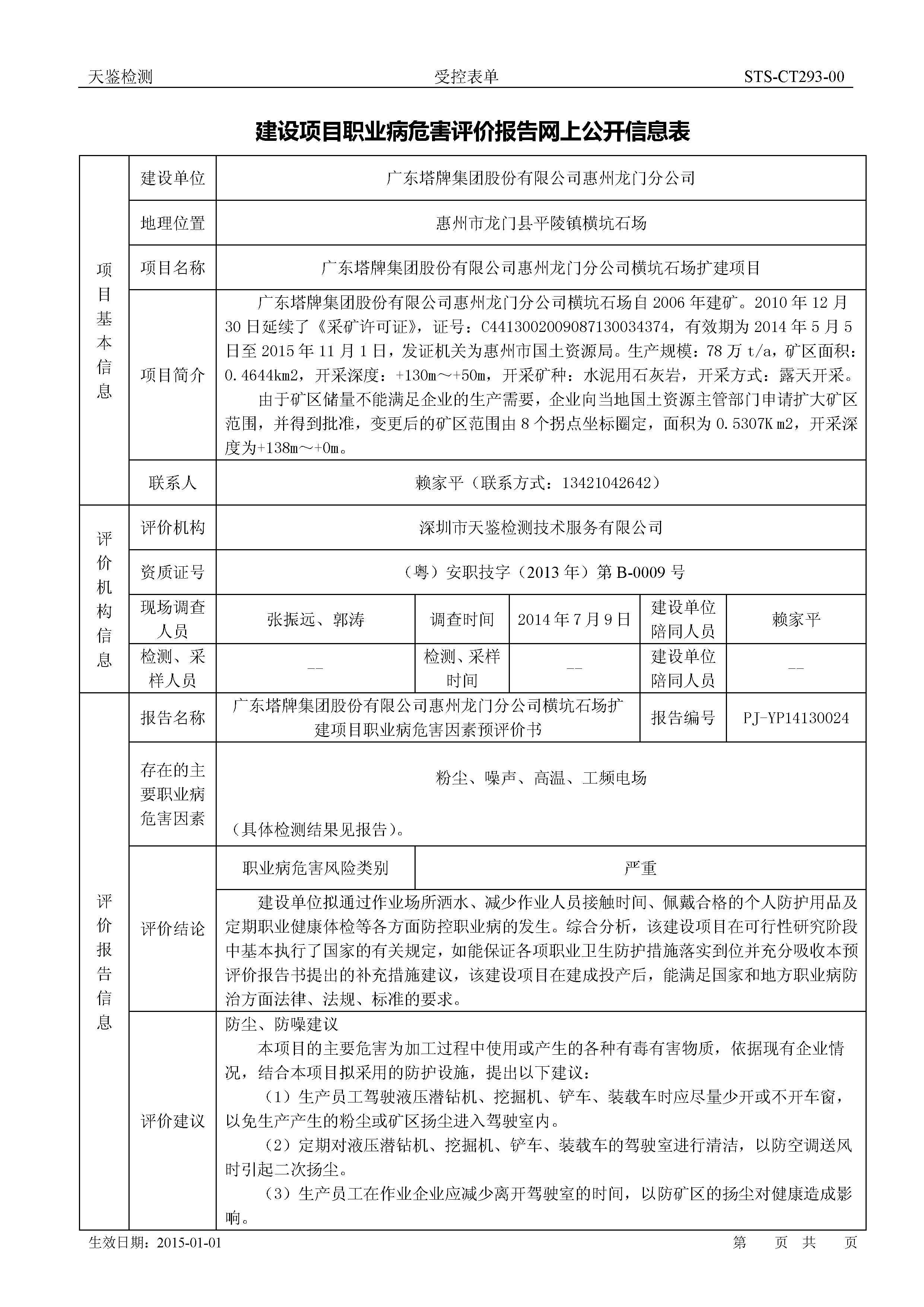 根據監管部門要求,現將本項目報告部分信息予以公開