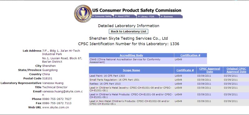 Consumer Product Safety Committee (CPSC) registered & accredited 'Third party conformity assessment body'