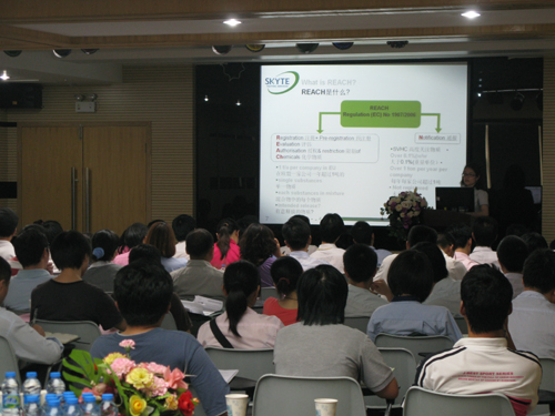 為了使廣大的客戶更加深入地了解RoHS2.0、REACH法規最新進展及美國加州65法規的技術標準和要求,同時為關注消費品出口歐美國家的廠商和企業提供了一個互相學習、交流的平臺。2011年6月2日下午深圳天鑒測試(SKYTE)在深圳總部七樓多功能廳成功地舉辦了“RoHS2.0、REACH法規最新進展及美國加州65法規解析會”。深圳及周邊地區約百家廠商代表參加了本次研討會。
