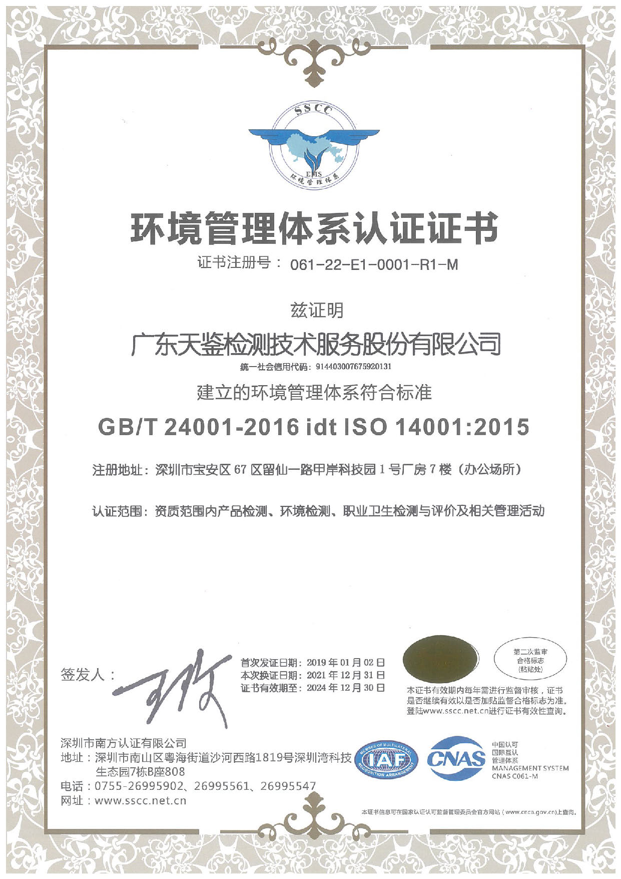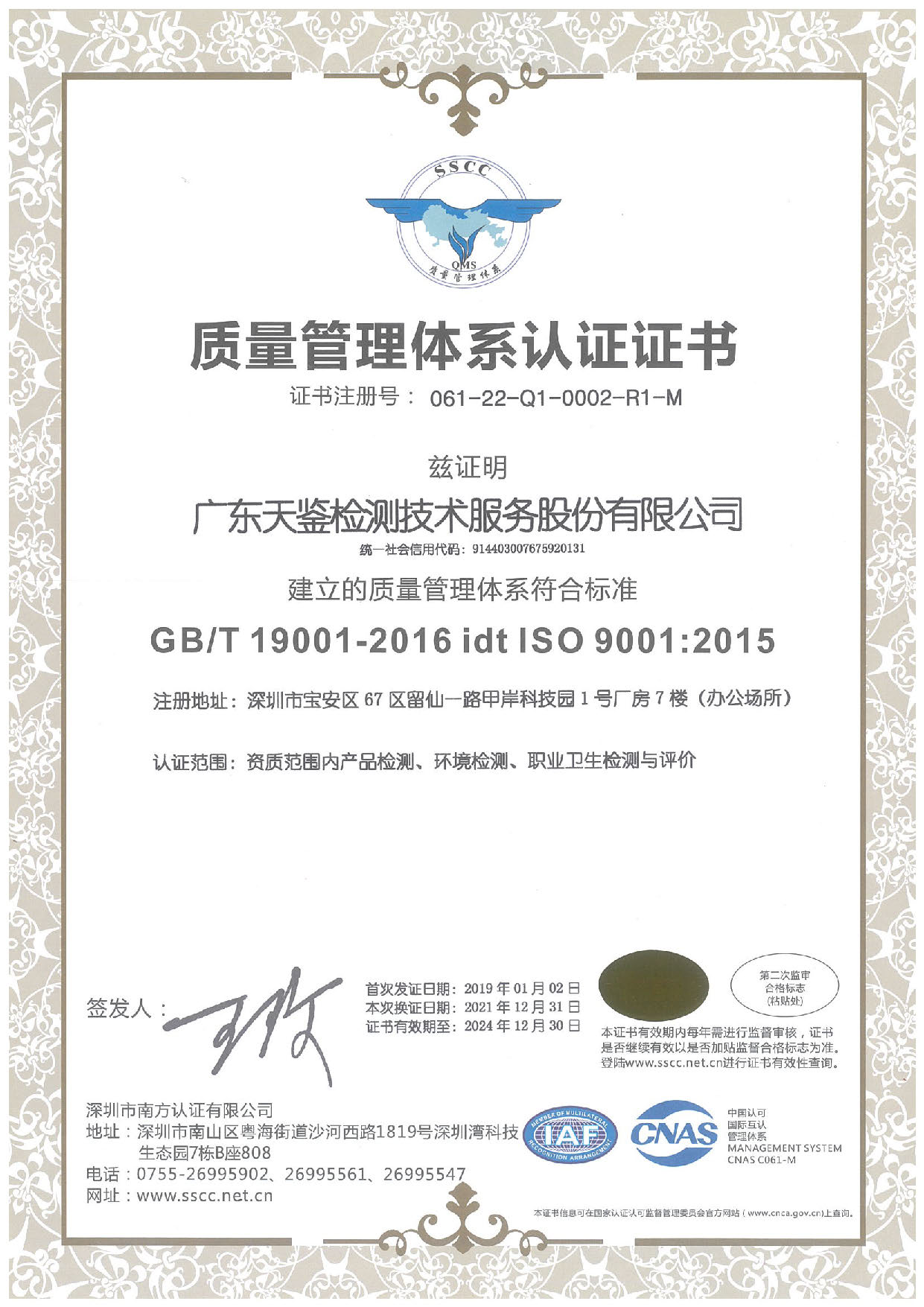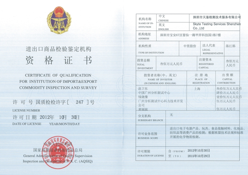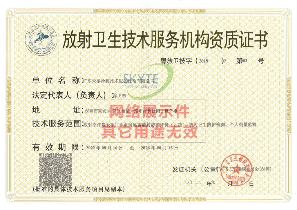 廣東天鑒檢測技術服務股份有限公司(原深圳市天鑒檢測技術服務有限公司)具備以下第三方檢測資質,可提供權威的第三方檢測服務,歡迎聯系咨詢,竭誠為您服務!