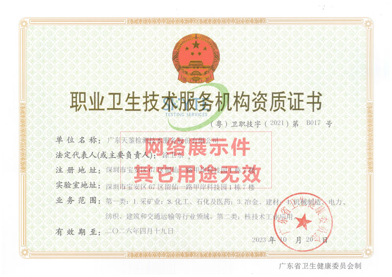 根據《國家衛生健康委辦公廳關于貫徹落實職業衛生技術服務機構管理辦法的通知》(國衛辦職健發[2021]2號)附件4《現有職業衛生技術服務機構資質延續新舊業務范圍轉并表》原2012年版業務范圍第一類10小類轉化為2021年版業務范圍第一類4小類:采礦業;化工、石化及醫藥;冶金、建材;機械制造、電力、紡織、建筑和交通運輸等行業領域。我司獲得第一類全部業務范圍認可以及第二類:核技術工業應用。